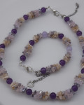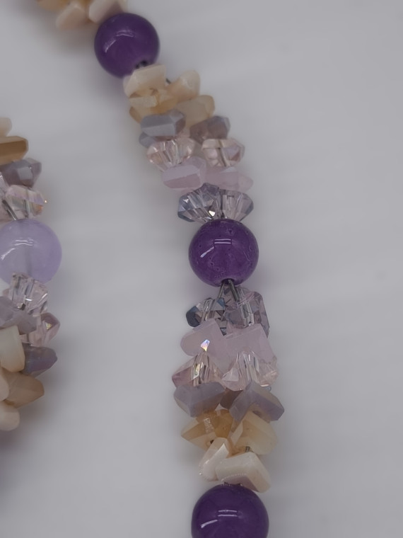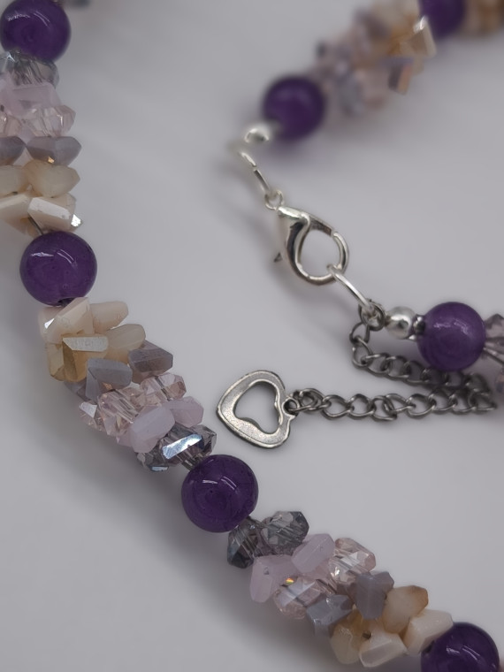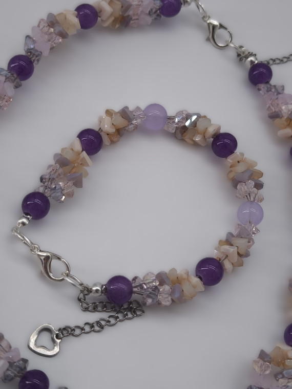 A graceful necklace and bracelet set in gentle purple and beige tones. The shimmering beads reflect light beautifully, adding elegance and softness to any outfit. Perfect for both daily wear and special occasions.