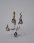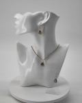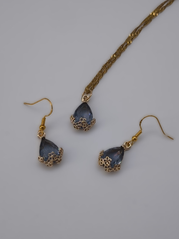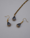 ЭA graceful pendant and earring set with golden details and shimmering deep-blue beads. The teardrop shape adds a touch of sophistication and timeless charm to any look.