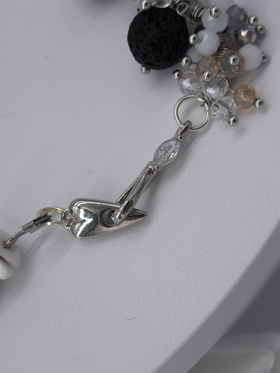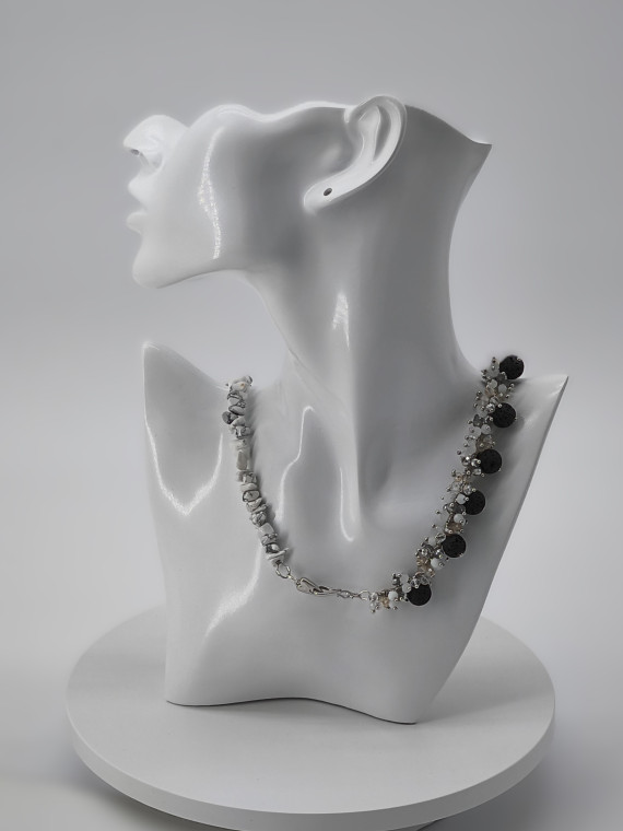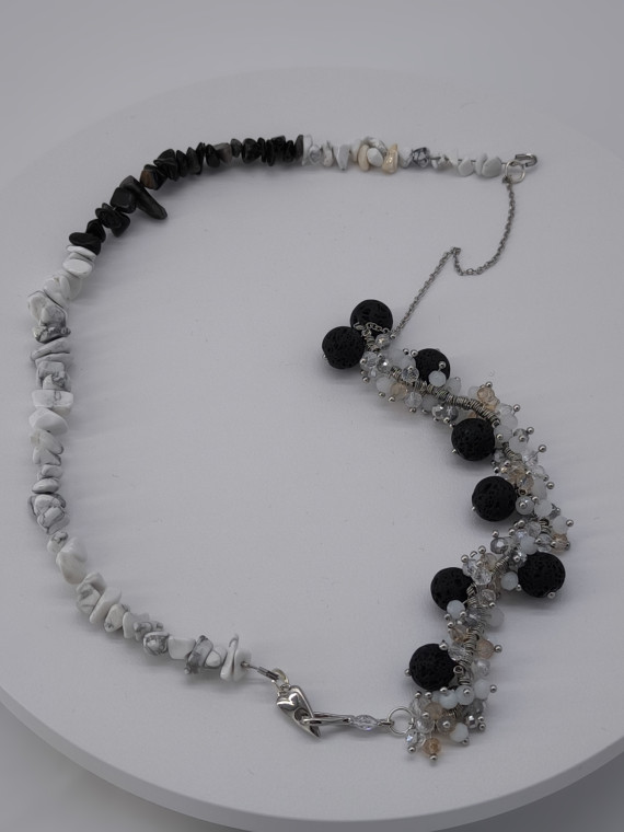 Valge-hallid mineraalid ja mustad laavakivid loovad tugeva, dramaatilise kontrasti. Ees olev kinnitus toimib keskse disainielemendina. Pikkus 58 cm.