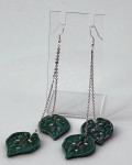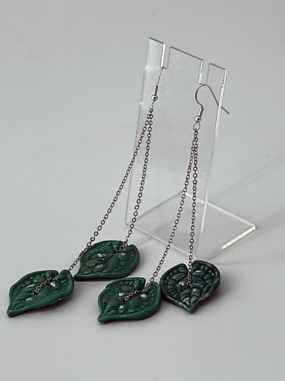 Серьги «Изумрудный Лист» вдохновлены красотой природы. Длинные серебристые цепочки завершаются подвесками в форме листьев глубокого зелёного оттенка. Длина серег — 11,5 см. Изысканное украшение, которое подчеркнёт вашу индивидуальность и добавит свежести образу.
