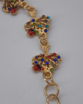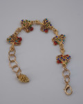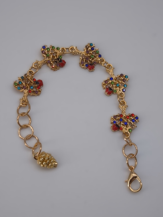 Эффектный браслет ручной работы длиной 15 см, украшенный золотистыми элементами в виде деревьев с разноцветными камнями. Подвеска-шишка добавляет лесной, немного зимний характер. Украшение для тех, кто любит яркие детали и атмосферу теплого волшебства.