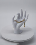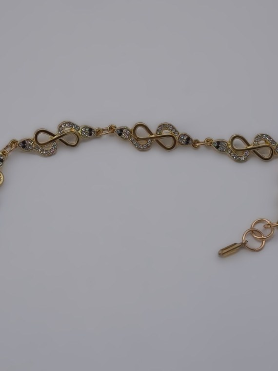 Изысканный браслет ручной работы длиной 17 см, выполненный из золотистых элементов в форме знака бесконечности, украшенных сверкающими камнями. Лёгкий, утончённый и сияющий — идеален для тех, кто выбирает женственность и элегантность в каждой детали.