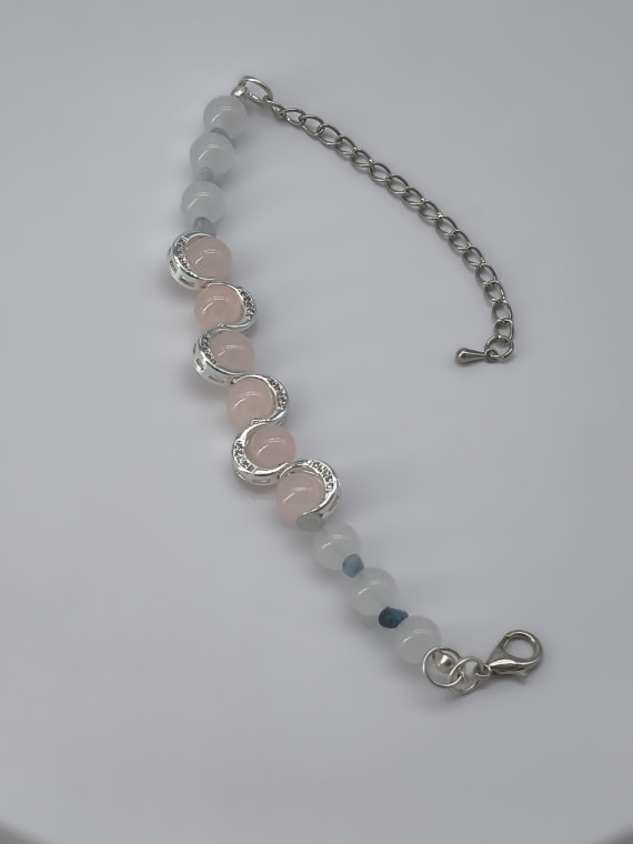 Элегантный браслет ручной работы длиной 14 см + 7 см удлинитель, выполненный из нежных полупрозрачных бусин и розовых камней в серебристых оправах. Мягкая пастельная гамма и плавные формы создают ощущение спокойствия и лёгкой романтичности. Идеален для тех, кто любит утончённые украшения с мягкой энергетикой.