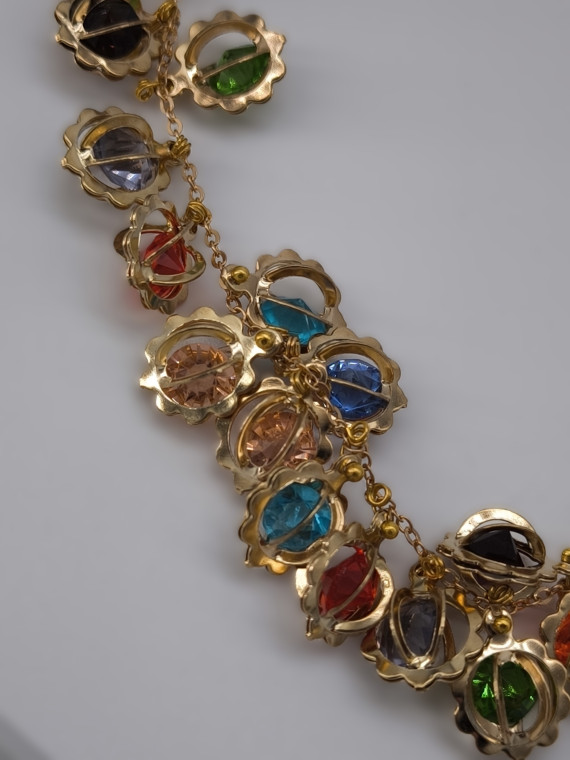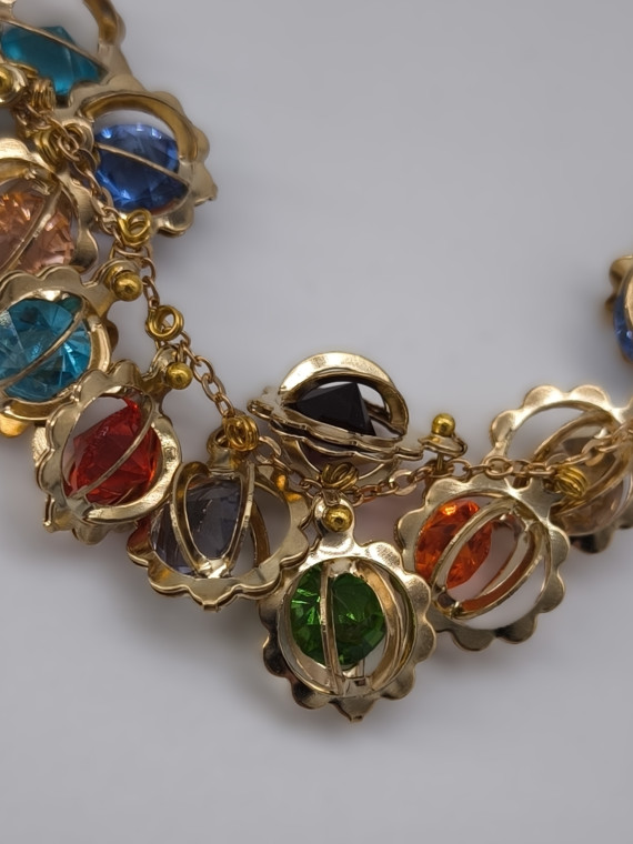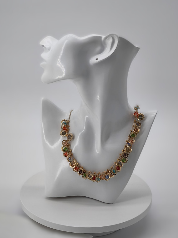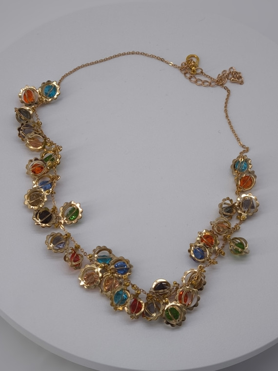 Яркое украшение с миниатюрными цветными сферическими подвесками в золотых оправах. Бусы создают эффект живой мозаики — каждая сфера ловит свет под разным углом. Длина 47+7 см позволяет регулировать посадку и носить украшение как ближе к шее, так и чуть ниже.