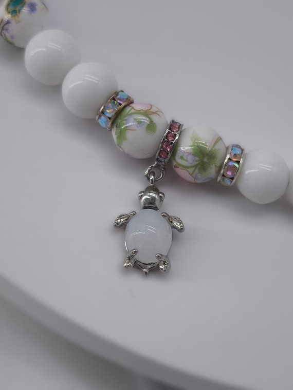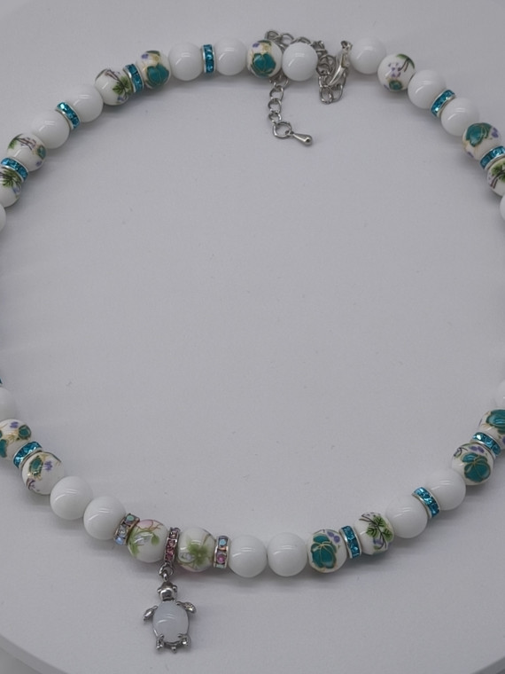 Белые бусины и бирюзовые акценты создают свежий морской образ, а подвеска-черепашка добавляет игривости и лёгкой символики путешествий. Длина 46+7 см — регулируемая, удобная в носке.